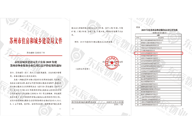 • 2019年度蘇州市物業(yè)服務企業(yè)信用等級A級
